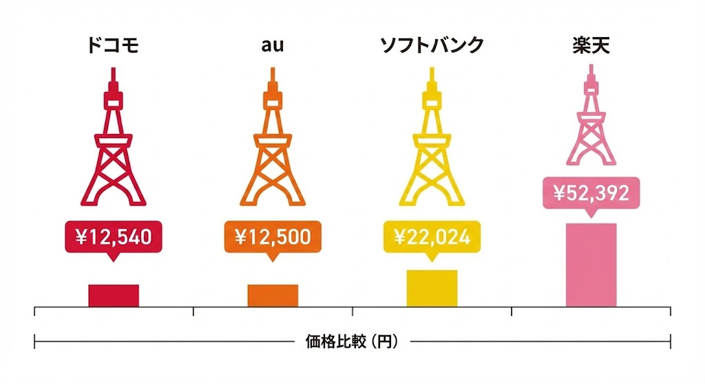 キャリア別価格比較|ドコモ vs au vs ソフトバンク vs 楽天モバイル