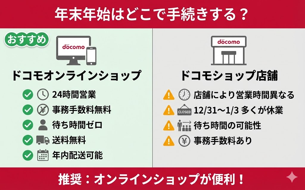 2025-2026年末年始にドコモで手続きする際のポイントも紹介しておきます。