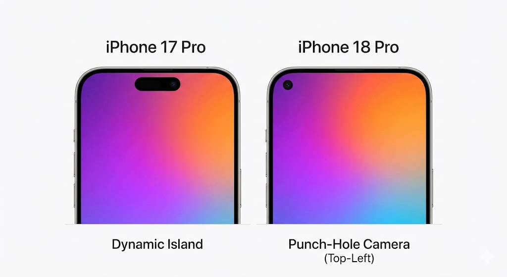 iPhone 18 Proの最大のデザイン変更は、フロントカメラの位置です。